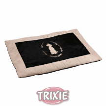 Softplüsch/Veloursleder-OptikPolyester-BezugPolyestervlies-Füllungwarme Liegefläche auch auf kalten und harten Bödenmit edler Hundekönig-Stickereischützt Polster vor Schmutz und TierhaarenGröße: 100 x 70 cm Farben: beige / schwarzgeschmacksmustergeschützt