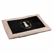 Softplüsch/Veloursleder-Optik Polyester-Bezug 4 cm Polyestervlies-Füllung warme Liegefläche auch auf kalten und harten Böden mit edler Hundekönig-Stickerei schützt Polster vor Schmutz und Tierhaaren rutschfester Nylon-Boden Größe: 100 x 70 cm Farben: beige / schwarz Waschbar beide Teile bei 30 Grad, sanft schleudern